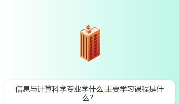 信息与计算科学专业【主要课程】有:数学分析、高等代数、几何、概率统计、数学模型、离散数学、模糊数学、实变函数、复变函数、微分方程、物理学、信息处理、.