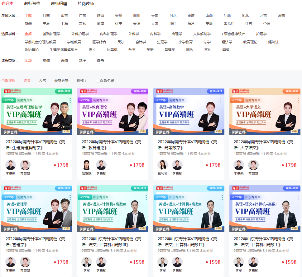 2021年各省专升本结束,2022年升本的号角已经吹响,库课网校2022年专升本课程已上线。