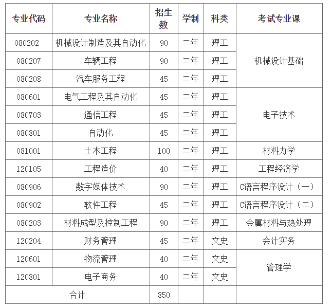 2021年兰州工业学院专升本招生专业分别为机械设计制造及其自动化、车辆工程、汽车服务工程、电气工程及其自动化、通信工程、自动化、土木工程、工程造价、数字媒体技术、软件工程、材料成型及控制工程、财务管理、物流管理、电子商务。