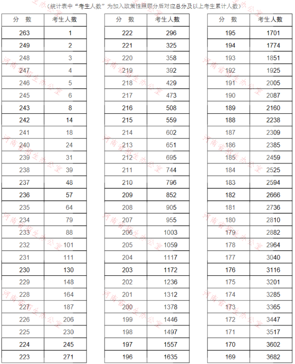 2021年河南省专升本(17学前教育)招生分数段统计表