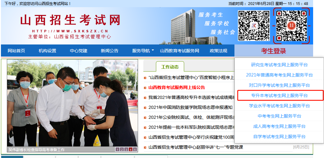 山西专升本成绩查询系统入口官网-库课专升本 艺考 • 2023-06-19 15:34:49 • 专栏 山西专升本成绩查询系统入口官网 考生登录“山西招生考试网”(http://www.sxkszx.cn),在首页右上方的“考生登录”中,选择“专升本考试考生网上服务平台”,进入“山西省普通高校专升本选拔考试信息服务平台”,输入本人考生号、密码及系统提供的验证码,进入系统后点击左侧“成绩与录取信息”查看成绩。 本文由用户:艺考 投稿分享,如有侵权请联系我们(点击这里联系)处理,若转载,请注明出处:http://xueli.yktime.cn/238.html 赞 (0) 艺考 0 生成海报 相关推荐 2018年河北传媒学院艺术类专业校考成绩查询 2018年河北传媒学院艺术类专业校考成绩查询网址:http://hgz.hebic.cn/2018/具体查询办法、开通查询省份详见:河北传媒学院2018年艺术类专业招生考试成绩查询… 专栏 2023-06-19 00 2022年四川化工高级技工学校有哪些专业 为您整理了2022年四川化工高级技工学校有12个热门专业,专业数据来源网络供参考,专业介绍、收费标准请四川化工高级技工学校官网公布为准。 四川化工高级技工学校开设的专业: 1、幼儿… 专栏 2023-06-19 00 地理信息科学专业学什么,学习适合女生吗? 地理信息科学毕业以后会走向什么样的工作岗位? 地理信息科学专业(非师范)本专业是地理学与计算机科学、信息科学结合而成的新专业,主要学习空间数据采集与处理、地理信息系统开发与应用、遥… 专栏 2023-06-19 00 2018江西艺术统考考试大纲调整通知 关于对我省普通高校招生艺术类专业统一考试大纲进行适当调整的通知 各设区市招考委、教育局: 根据教育部有关普通高校艺术类专业招生考试文件精神和有关专家、教授的意见,结合我省普通高校… 专栏 2023-06-19 00 2022年琼台师范学院专升本报名时间及流程 现今网络的发达使得我们每个人都逐渐产生了依赖,很多时候出现了问题也会依赖于网络等手段去解决,久而久之就丧失了独立思考的能力。因此我们每个人都要抓住能够产生思考的机会,在思考中提升自… 专栏 2023-06-19 00 2022年曲靖麒麟长兴职业技术学校有哪些专业 为您整理了2022年曲靖麒麟长兴职业技术学校有15个热门专业,专业数据来源网络供参考,专业介绍、收费标准请曲靖麒麟长兴职业技术学校官网公布为准。 曲靖麒麟长兴职业技术学校开设的专业… 专栏 2023-06-19 00 编导艺考影评、故事怎样才能得高分? 【关于影评】 1、从哪儿评? 在影片中可评的角度很多。就一部影片而言,可以 评主题、评人物、评细节、评场面、评艺术特点、评电影语言的运用等;就多部影片来说,可综合评论一系列影片… 专栏 2023-06-21 00 2022年陕西航空职业技术学院分类考试考什么(考试大纲) 陕西航空职业技术学院2022年高职分类考试招生专业 专栏 2023-06-19 00 发表回复 您的邮箱地址不会被公开。 必填项已用 * 标注*昵称: *邮箱: 网址: 记住昵称、邮箱和网址,下次评论免输入 提交