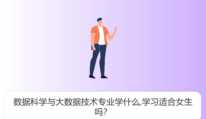 适合女生,不难学。大数据技术专业是一个培养能在互联网、证券、金融、银行、保险、it等行业,从事大数据系统搭建、管理、运维等工作的高端技能人才,而这些行业从不缺乏女性工作者,部分行业女性占比还挺大,所以女生也非常适合学习大数据技术.