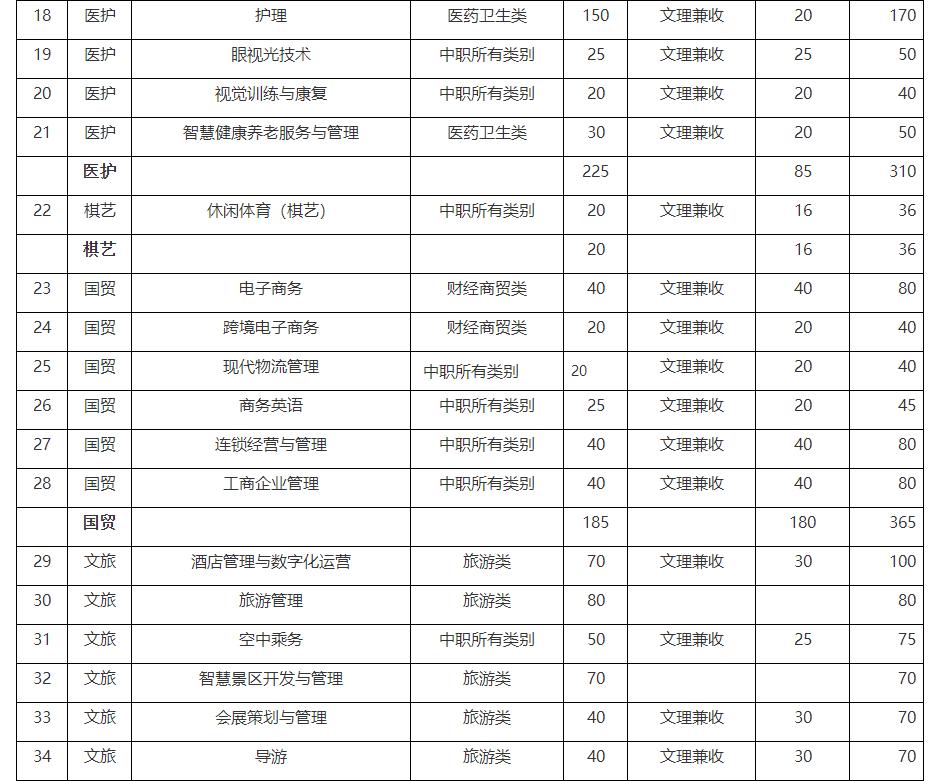 普通高中文科毕业生、财经商贸类和旅游类中职毕业生能报考铁道交通运营管理、大数据与会计、保险实务、旅游管理、市场营销、社区管理与服务6个文管类专业。