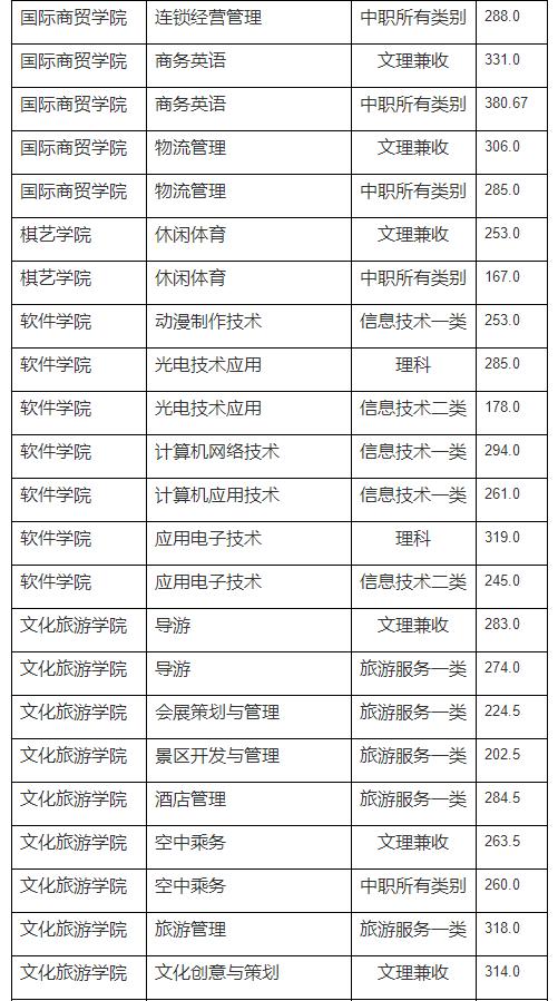 学院高职单招中职类招生2019年录取最低分数线202.9分(电子信息工程技术专业);2020年录取最低分数线212.5分(电子信息工程技术专业);2021年录取最低分数线160分(电子信息工程技术专业)。
