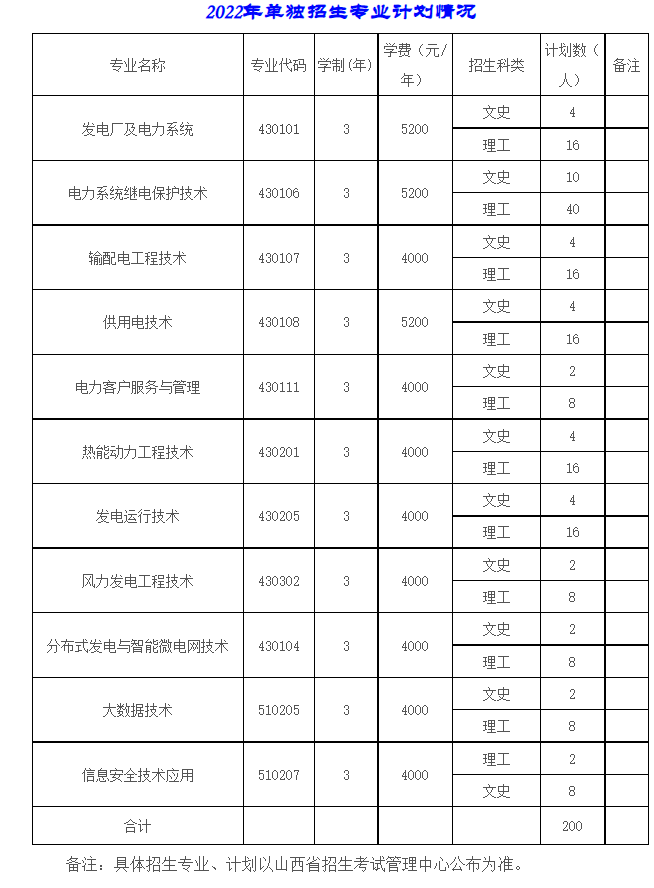 备注:具体招生专业、计划以山西省招生考试管理中心公布为准。