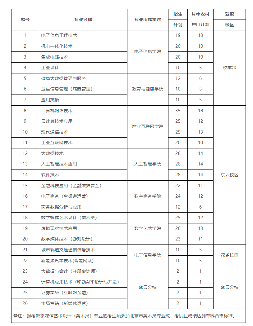 第九条 北京信息职业技术学院2022年自主招生总计划450人,招生计划如下: