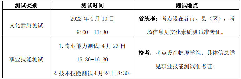我校测试时间和方式视疫情发展情况而定,请密切关注蚌埠学院招生信息网,并保持手机畅通。
