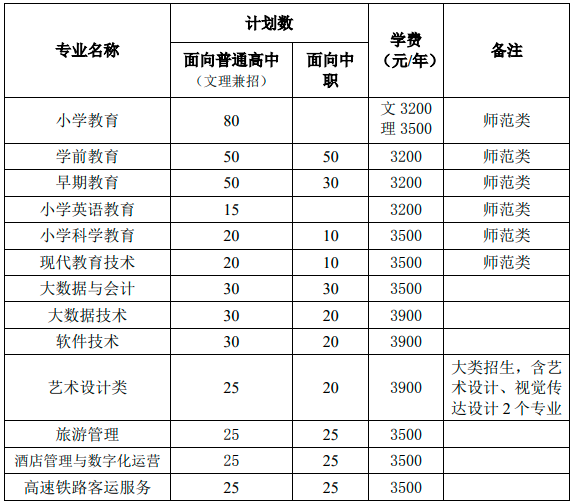 备注:1.最终招生专业及计划以教育厅下达为准。