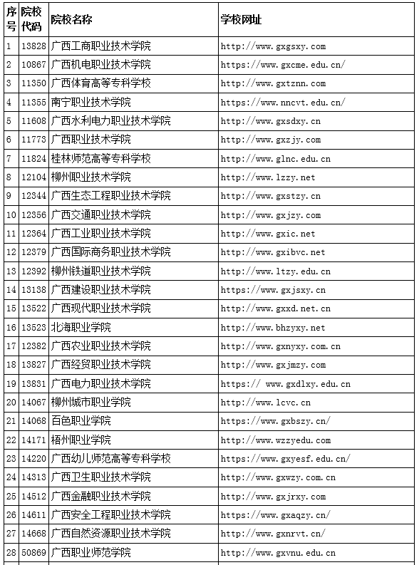 附件:广西公办高职高专院校招生联盟2022年高职单招联合测试院校成员名单