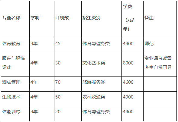 其中,体育教育和体能训练专业按运动专项进行招生,各专项计划及要求如下: