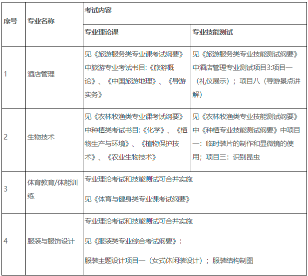 (一)酒店管理、生物技术、服装与服饰设计专业: