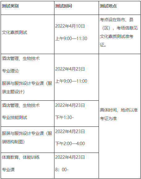 1、酒店管理、生物技术专业:考试科目由文化课、专业理论和专业技能测试组成,考试总分750分。其中,文化课考试实行语文、数学、英语三科合卷,满分300分(其中语文、数学各120分,英语60分),由安徽省考试院组织全省统一考试;专业理论满分200分,专业技能测试总分250分,由我校组织考试。文化课达到安徽省考试院划定的文化素质测试合格线及以上为合格,其余为不合格;专业技能测试150分及以上为合格,150分以下为不合格。