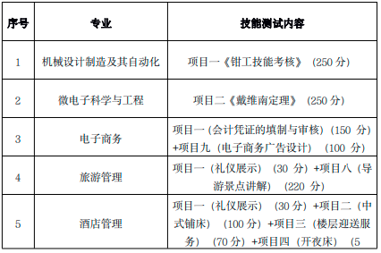 池州学院 2022 年中职毕业生对口招生“技能测试”考核内容