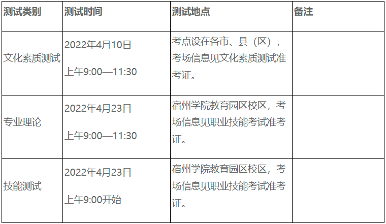 备注:技能测试因专业不同,其考试安排也不同,故具体时间、地点详见我校招生网(或准考证),请考生务必牢记技能测试时间和地点,并按时参加考试。