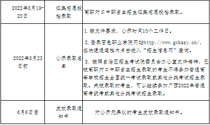 为切实做好我院2022年对口中等职业学校毕业生自主招生工作,根据《关于做好我区2022年高等职业院校单独考试招生和高等职业院校对口中等职业学校毕业生自主招生工作的通知》(桂招考委办〔2022〕2号)文件精神,结合工作实际,制定我院2022年高等职业院校对口中等职业学校毕业生自主招生(以下简称高职对口招生)简章。具体内容如下: