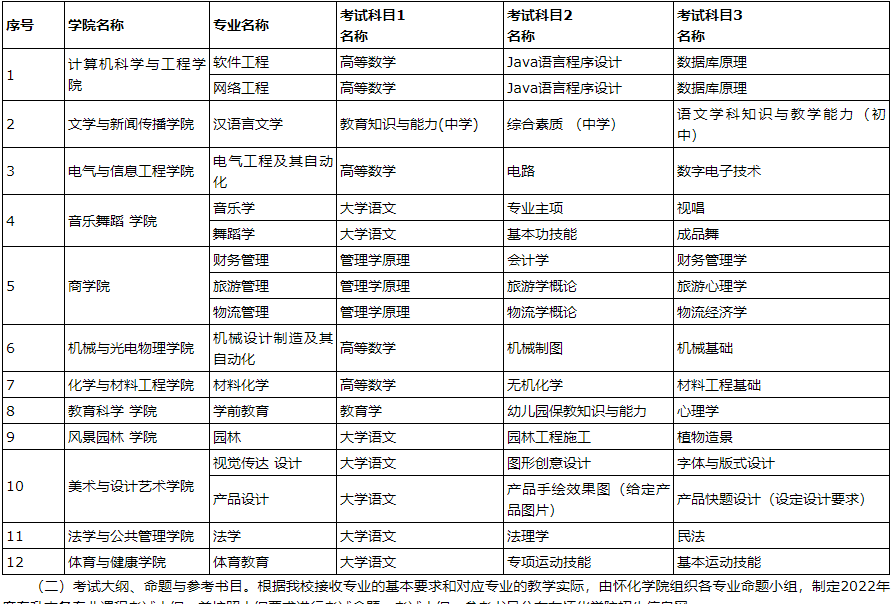 (二)考试大纲、命题与参考书目。根据我校接收专业的基本要求和对应专业的教学实际,由怀化学院组织各专业命题小组,制定2022年度专升本各专业课程考试大纲,并按照大纲要求进行考试命题,考试大纲、参考书目公布在怀化学院招生信息网。