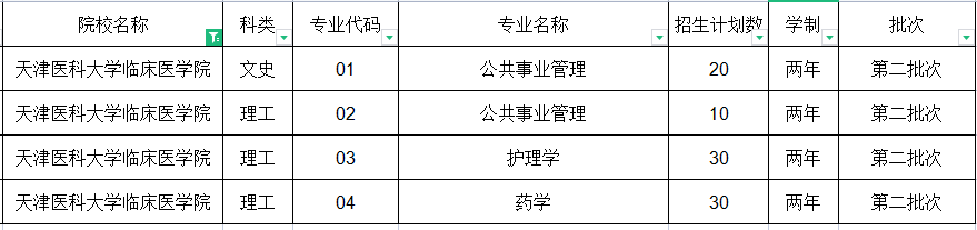 2021年天津医科大学临床医学院专升本招生计划