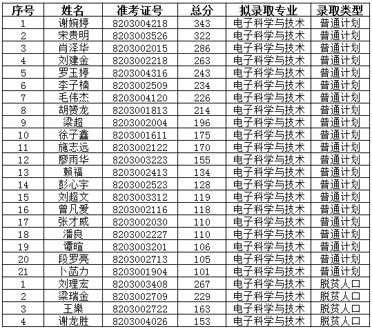 根据江西省教育厅《江西省2021年普通高校专升本考试招生实施方案》〔赣教高字(2021)7号〕、江西省教育考试院《关于做好全省2021年普通高校专升本考试招生工作的通知》和《关于江西省2021年普通高校专升本考试公共基础科目最低录取控制分数线的公告》要求,结合我校2021年联合培养本科层次技术技能型人才专升本招生简章的录取原则,经江西省教育考试院审核,现将拟录取名单公布如下: