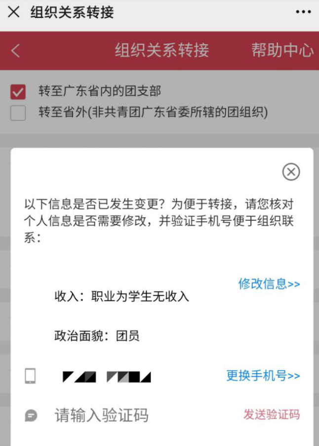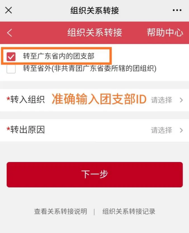 选择“ 转至广东省内的团支部 ”,准确输入团支部id。