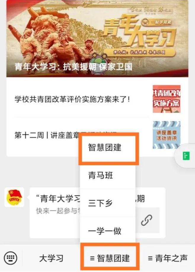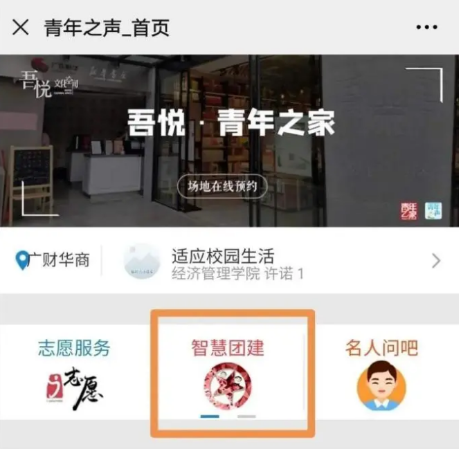 进入“ 青年之声 ”首页后,点击“ 智慧团建 ”