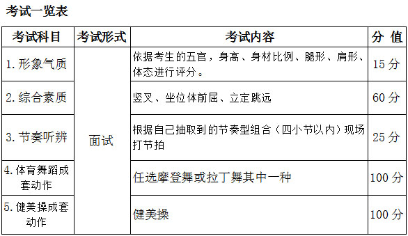 要求考生具有一定的柔韧性、弹跳力、平衡性。成套动作连贯、编排合理,能高质量地完成能力类别动作,具有一定舞蹈表现力。