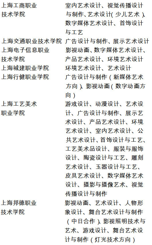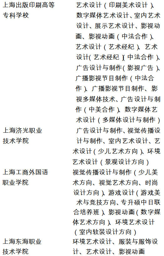 以及上海市统考涉及到的外省市院校美术与设计学类专业。