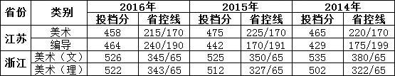 报考我校美术类本科专业的考生,江苏省按照文化+专业成绩总分,从高到低择优录取。浙江省按照本省规定的综合分进行投档与录取。