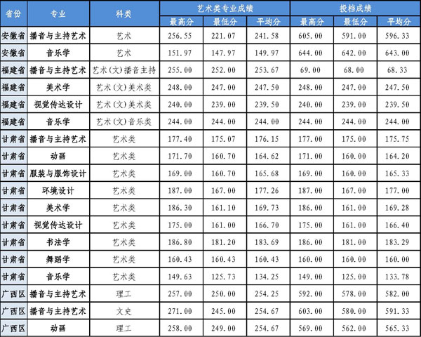 甘肃省:美术设计学类、音乐学、舞蹈学、播音与主持艺术、书法学