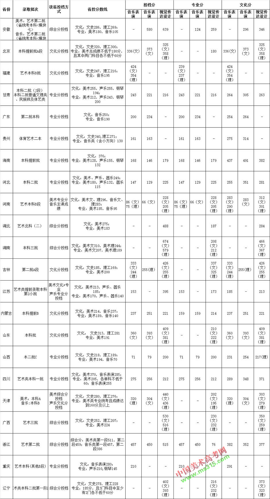 考生专业课达到我院报考要求,经德、智、体全面考核,文化课考试成绩达到所在省划定的录取控制分数线,根据不同省份,对进档考生采取以下录取方式: