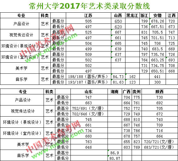 2017年常州大学美术类专业校考合格分数线