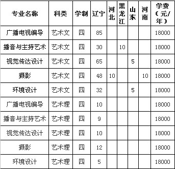 沈阳城市学院2017年艺术类本科分省分专业招生计划