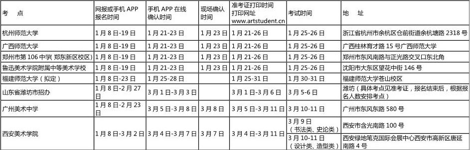 (1)考试类别安排:a、外考点第一天考试安排设计类、音乐类(潍坊考点),第二天考试安排造型类;