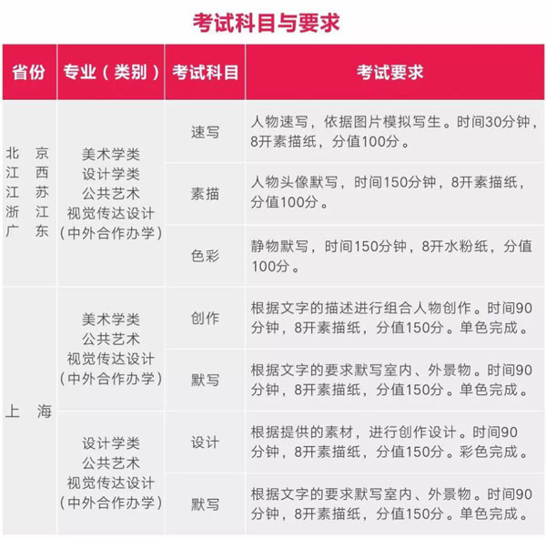 2018江汉大学美术类校考时间 艺考 • 2023-06-19 15:24:13 • 专栏 江汉大学2018年美术类校考报名与考试时间、地点 校考考试科目与要求 备注:上海考生可兼考美术类和设计类,其中默写为公共考试科目,只需一次考试。 更多细节详见:2018年江汉大学美术与设计类招生简章 本文由用户:艺考 投稿分享,如有侵权请联系我们(点击这里联系)处理,若转载,请注明出处:http://xueli.yktime.cn/39283.html 赞 (0) 艺考 0 生成海报 相关推荐 2018年江西美术联考备考指南 相关事件安排 报名时间:2017年11月11-17日 考试时间:2017年12月17日举行,各设区市招考办(… 专栏 2023-06-19 00 2022年山西戏剧职业学院吕梁教学班有哪些专业 为您整理了2022年山西戏剧职业学院吕梁教学班有4个热门专业,专业数据来源网络供参考,专业介绍、收费标准请山西戏剧职业学院吕梁教学班官网公布为准。 山西戏剧职业学院吕梁教学班开设的… 专栏 2023-06-19 00 2018年中国传媒大学艺术类高职招生简章 中国传媒大学于1999年开设高职(专科)层次艺术类专业,其教育目标是为广播电视传媒领域培养具有一定理论基础和较强实践操作技能的应用型人才。 一、招生计划 专业名称 招生省份 学… 专栏 2023-06-19 00 宿迁学院2018年江苏省艺术类专业招生简章 一、专业概况 2018年宿迁学院艺术类本科招生专业有6个:产品设计、音乐学(师范)、音乐学、美术学(师范)、美术学、数字媒体艺术。学生毕业时颁发宿迁学院的学历文凭和学士学位证书,… 专栏 2023-06-19 00 华东师范大学2018年艺术类招生简章汇总 2018年华东师范大学设计学类招生概况 招生专业:视觉传达设计、产品设计、环境设计、公共艺术 考试类型:承认… 专栏 2023-06-19 00 对高考平行志愿的解读与应对策略 2012年高考将至,为更好地为陕西考生提供相关信息及咨询服务,西北政法大学特推出省著名高考咨询专家阎文生老师撰写的专题文章,希望有助于指导广大… 专栏 2023-06-19 00 工业产品质量检测技术专业学什么,学习主要是干什么的? 学产品质量工程啊 工业贸易学校是中专学校,其培养的主要是实用性的人才。产品质量监督检查专业毕业后,主要适合到企业产品质量监督检测中心,搞质量检测,也可以报考自学及成人高考等继续. … 专栏 2023-06-19 00 湖南工程学院2022年专升本招生简章 湖南工程学院坐落于一代伟人毛泽东的故乡湖南省湘潭市,是湖南省人民政府举办的本科院校。学校是教育部“服务国家特殊需求人才培养项目”硕士专业学位研究生教育试点高校、教育部首批“卓越工程… 专栏 2023-06-19 00 发表回复 您的邮箱地址不会被公开。 必填项已用 * 标注*昵称: *邮箱: 网址: 记住昵称、邮箱和网址,下次评论免输入 提交