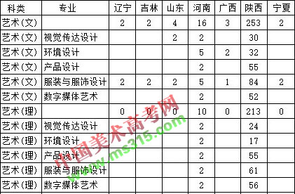 一、陕西服装工程学院2017年美术类本科分省分专业计划