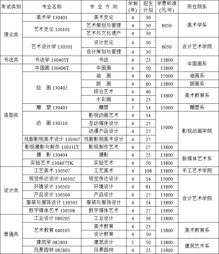 注:①招生专业、计划及收费标准以上级主管部门下达为准;②住宿费每人1200元/年(四人间)。③各院系及专业(方向)介绍,请关注四川美术学院招生网和各院系网站。