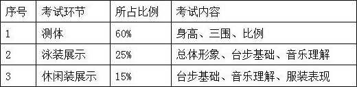 二、在测体环节和泳装展示环节,女生的着装要求为:分体式单色泳装,泳裤为三角式(不能为裙式),男生的着装要求为:上身裸身,下身穿单色合体泳裤。具体可参照范例图片1和2。