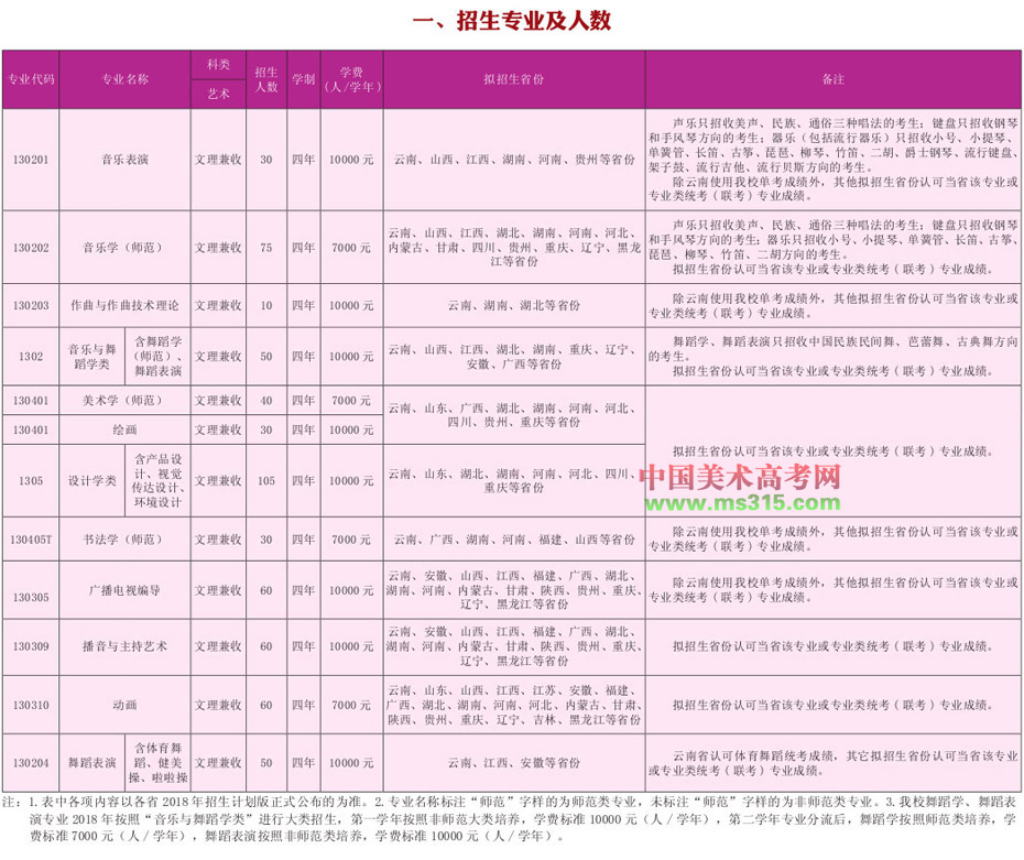1.2018年视觉传达设计、环境设计、产品设计3个本科专业按设计学类进行大类招生。学生入学学习一年以后进行分流培养。云南省及省外拟招生省份均认可当省该专业或专业类统考(联考)专业成绩。