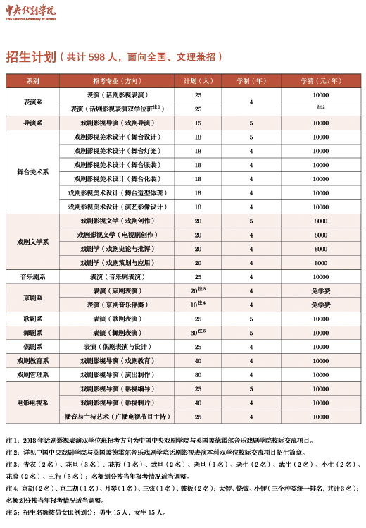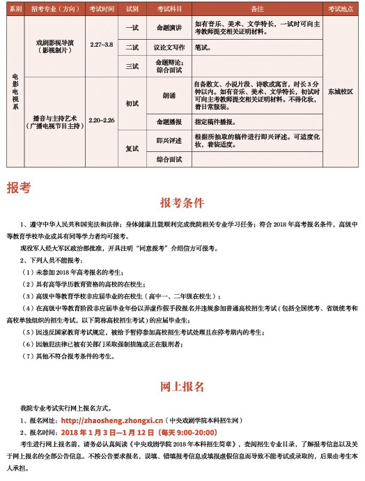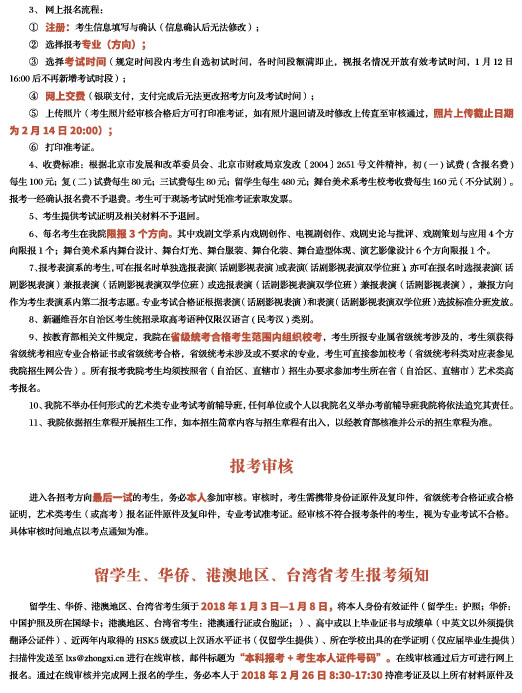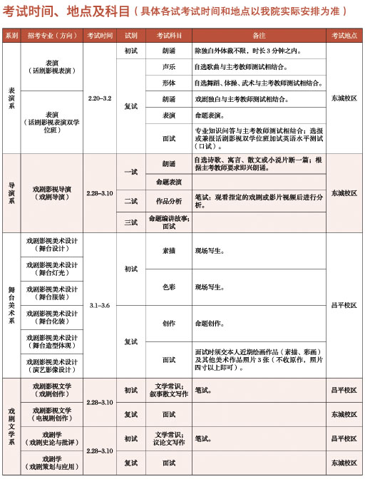 中央戏剧学院2018年本科专业考试复(二)试、三试考试安排