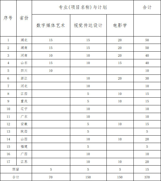 根据教育部关于普通高等学校艺术类专业招生的有关规定和教育部关于中外合作办学项目的相关要求,结合学校的培养能力和办学实际,学校决定2018年继续招收艺术类专业以及中韩合作艺术设计专业本科教育项目的考生共370名。