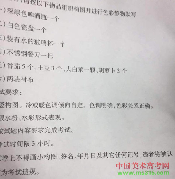 2018浙江美术联考色彩考题 艺考 • 2023-06-19 15:24:49 • 专栏 2018浙江美术联考色彩考试12月17日14:00-17:00举行,考试时长3小时,4开铅画纸。 色彩考试题目:默写静物组合 本文由用户:艺考 投稿分享,如有侵权请联系我们(点击这里联系)处理,若转载,请注明出处:http://xueli.yktime.cn/40192.html 赞 (0) 艺考 0 生成海报 相关推荐 2017年宁波大红鹰学院美术类本科录取分数线 宁波大红鹰学院2017年浙江省美术类本科录取分数线 专业名称 艺术第二批 招生计划 第一段 第二段 最高分 最低分 平均分 第一段投档位次号 第二段投档位次号 动画 50 23 2… 专栏 2023-06-19 00 海南省2016年省外艺术“校考”院校拟录取名单(一) 2016年省外艺术“校考”院校拟录取名单(一) 序号 考生号 姓名 院校代码 拟录取院校名称 拟录取专业 备注 1 16460703134364 林铭胡 19422 山东大学威海分… 专栏 2023-06-19 00 邢台学院2017年河北省本科提前A批录取名单 序号 姓名 专业 学制 录取成绩 1 黄晓娟 表演 四年 271 2 王明利 表演 四年 264.75 3 李靖森 表演 四年 263.25 4 白亚楠 表演 四年 263.25 … 专栏 2023-06-19 00 河套学院2018年内蒙古艺术类专业招生计划 河套学院2018年内蒙古艺术类本科专业招生计划 专业名称 招生计划 美术学(广告设计方向) 40 美术学 40 音乐学 40 视觉传达设计 38 河套学院2018年内蒙古艺术类专… 专栏 2023-06-19 00 陕西理工大学2021年专升本入学须知来啦! 萌新们!大家好! 首先恭喜大家被陕西理工大学录取! 由于这次专升本报到时间和报到地点有些许区别,比如报到地点有陕西理工大学本部、陕西铁路工程职业技术学院、陕西国防工业职… 专栏 2023-06-19 00 合肥师范学院2022年对口单招招生专业 合肥师范学院2022年对口单招招生专业 备注:最终招生专业及计划以教育厅下达为准。 其中,体育教育和体能训练专业按运动专项进行招生,各专项计划及要求如下: 专栏 2023-06-19 00 2018年四川美术学院校考考题(贵州考点) 造型素描 命题人物组合 造型色彩 设计素描 设计色彩 设计基础 专栏 2023-06-21 00 兰州工业学院专升本专业 2021年甘肃专升本招生录取已经结束了,兰州工业学院专升本招生专业共有14个,库课网校带大家看一下2021年兰州工业学院专升本专业都是什么。 2021年兰州工业学院专升本招… 专栏 2023-06-19 00 发表回复 您的邮箱地址不会被公开。 必填项已用 * 标注*昵称: *邮箱: 网址: 记住昵称、邮箱和网址,下次评论免输入 提交