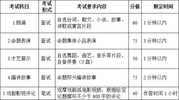 面试,通过考生自备文学作品的朗诵,考查考生语言方面的基本条件和素质及对朗诵作品的理解、感受、想象和表现能力。