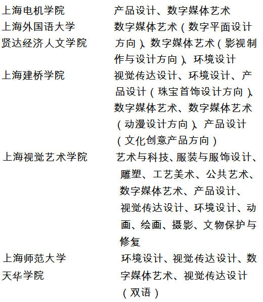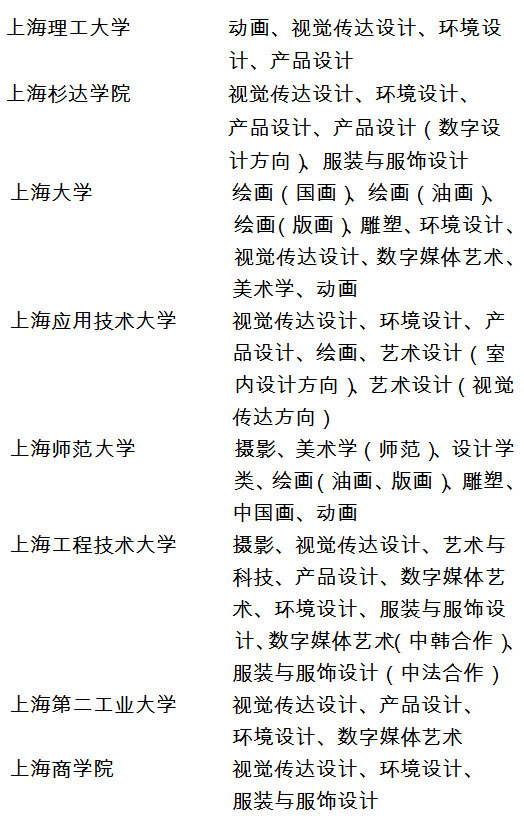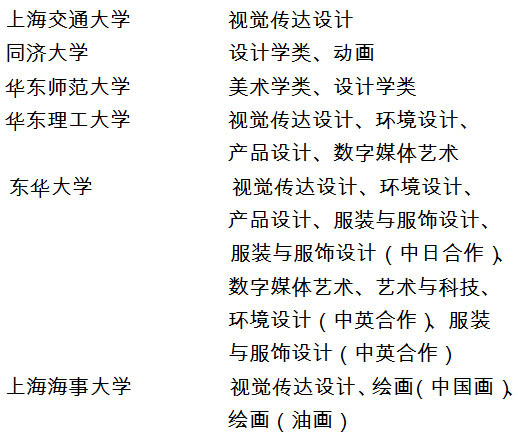 以及上海市统考涉及到的外省市院校美术与设计学类专业。