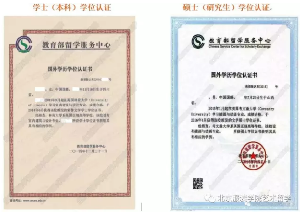 学生被授予的学士学位及硕士学位与国外大学本土学生颁发的学位无差别。教育部按照境外文凭认证注册制度给予认证,学位学历完整,学士学位认证为本科学历,硕士学位认证为硕士研究生学历。毕业生可办理留学人员回国工作就业报到证,享受海外高层次人才待遇,并根据北京、上海、广州等一线城市留学归国相关条例享受落户和其他优惠政策