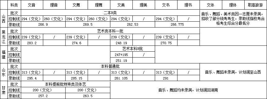 湖南第一师范学院2017年湖南省艺术类本科专业投档分数线