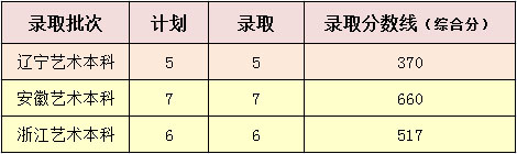 说明:其他省份录取分数线暂未公布,招生专业为环境设计、视觉传达设计、动画等三个本科专业和环境艺术设计一个专科专业。