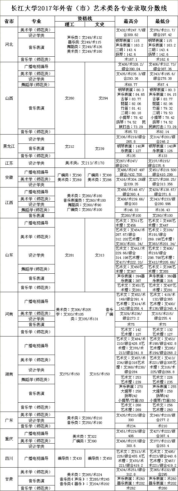 在各省招生人数详见:长江大学2017年艺术类本科分省分专业招生计划
