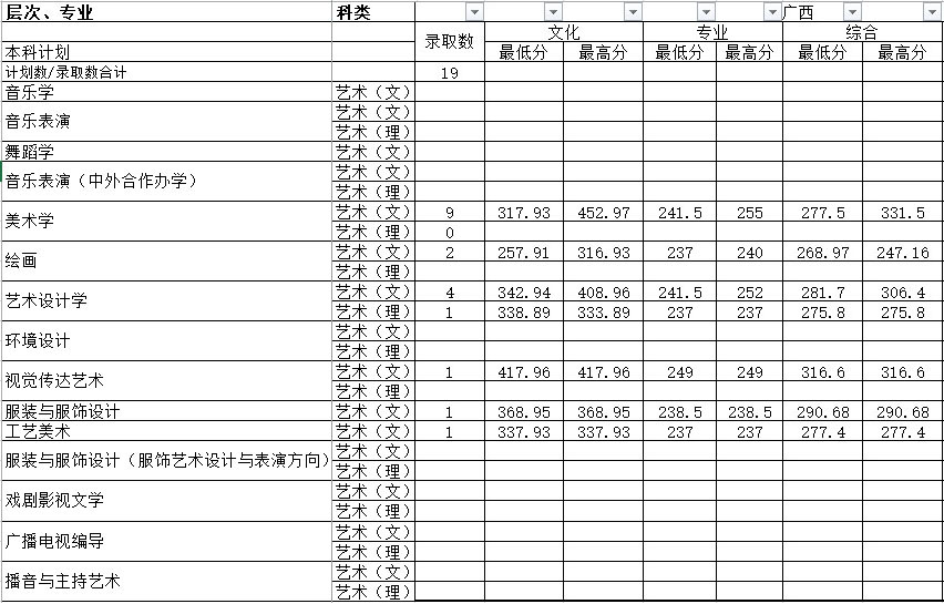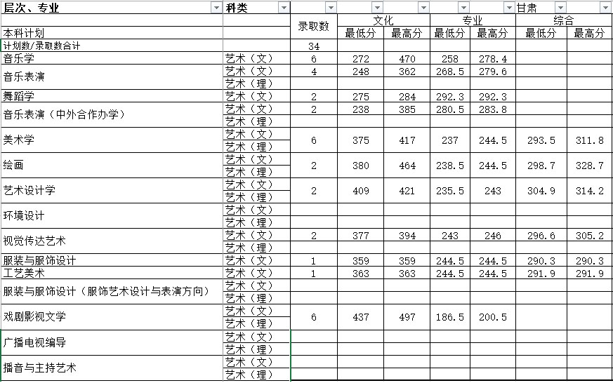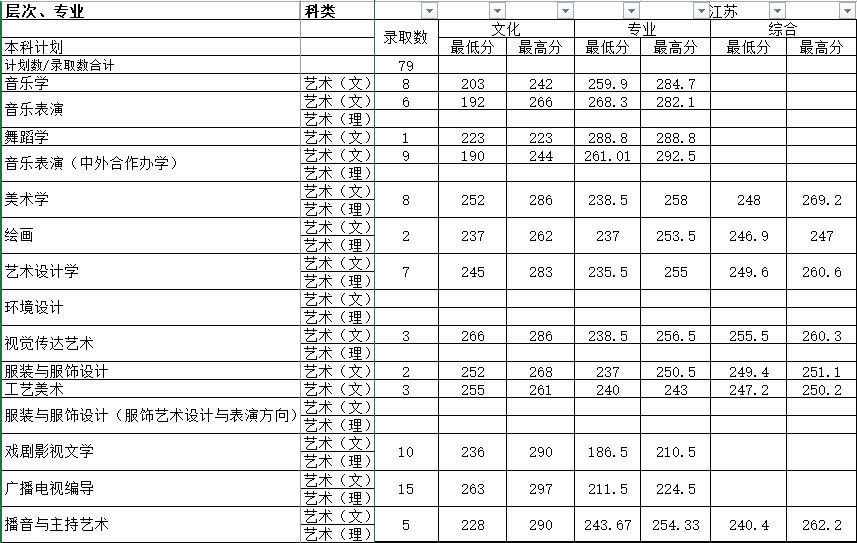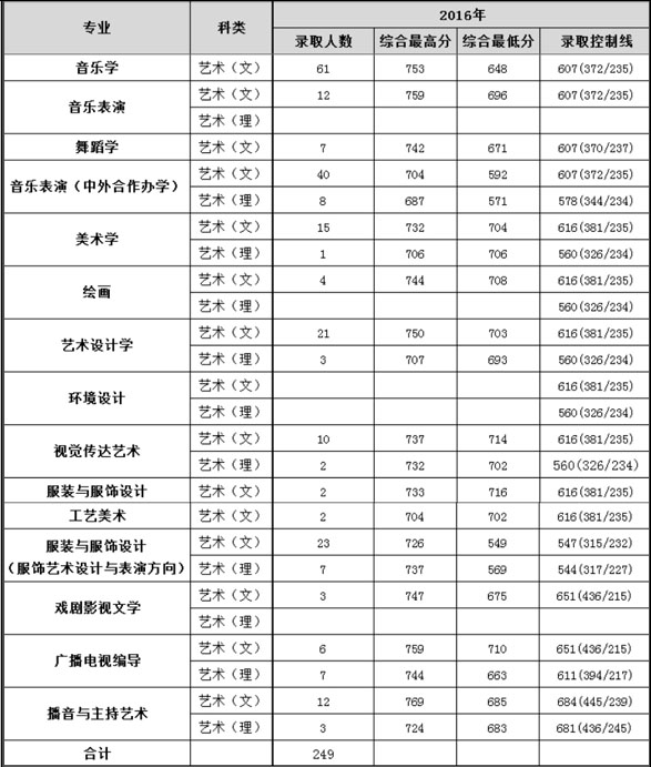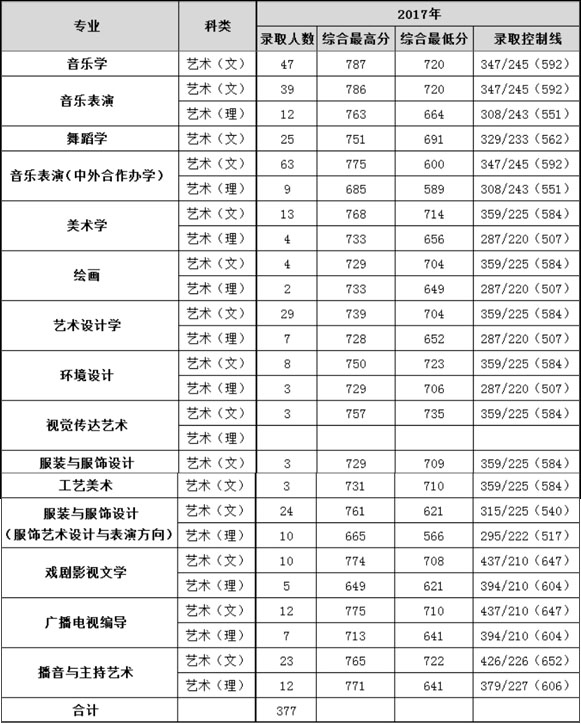 湖南师范大学2017年省外艺术类本科专业录取分数线