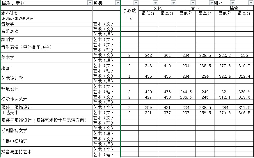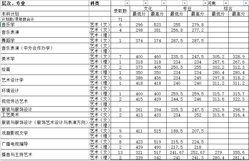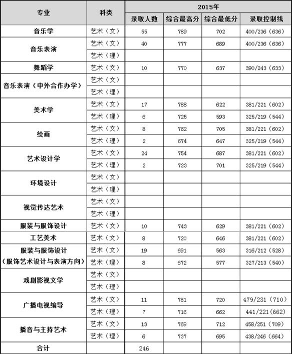 湖南师范大学2015年-2017年在湖南省艺术类本科专业录取分数线