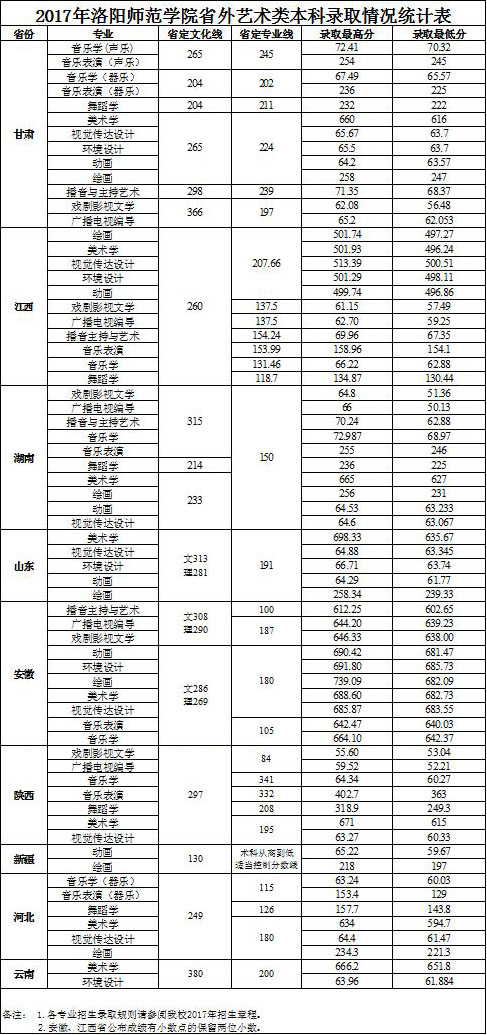 2017年洛阳师范学院不单独组织校考,采用各省艺术统考专业课出成绩作为录取时的专业课成绩依据。考生档案投档至学校后,采用志愿优先的方式,根据专业计划数,按各专业录取原则择优录取。