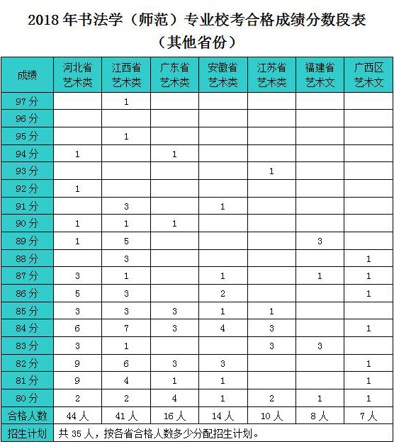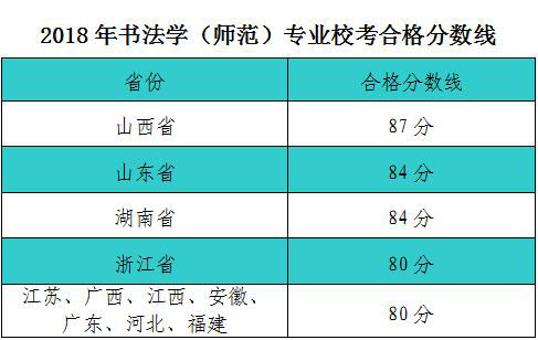 绍兴文理学院2018年书法学(师范)专业校考阅卷工作顺利结束。经研究决定,各省书法学(师范)专业校考合格分数线如下: